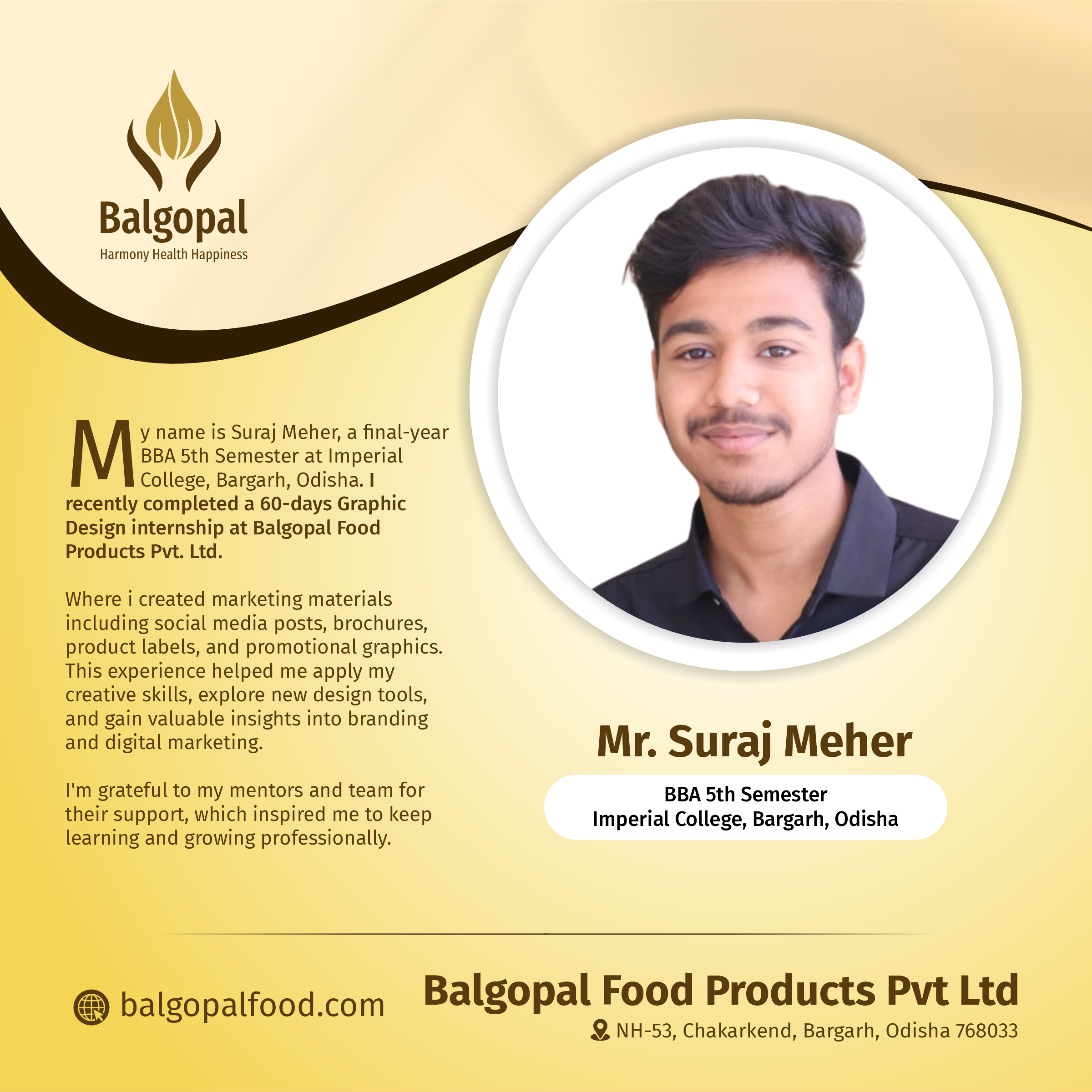 Balgopal Food Products Private Limited NH 53, Chakarkend, Dist: Bargarh, Odisha – 768033
