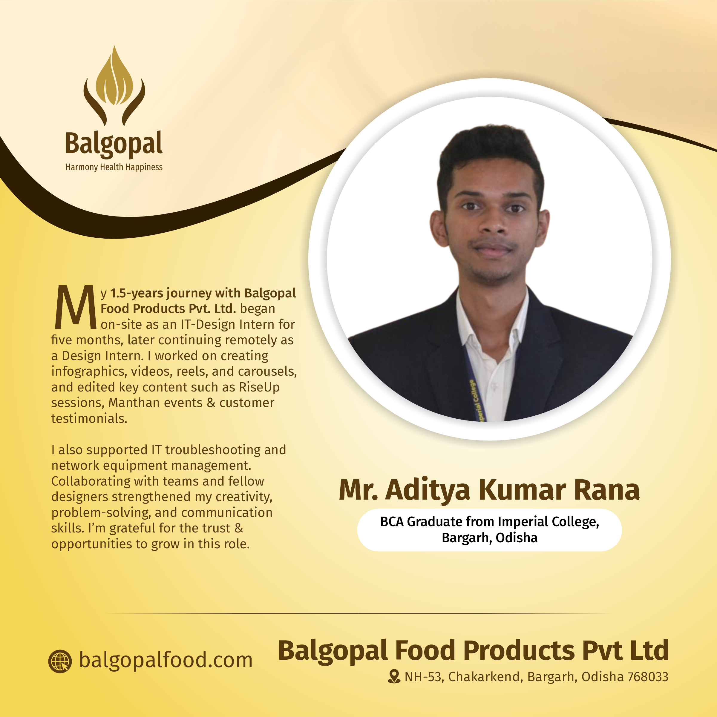 Balgopal Food Products Private Limited NH 53, Chakarkend, Dist: Bargarh, Odisha – 768033